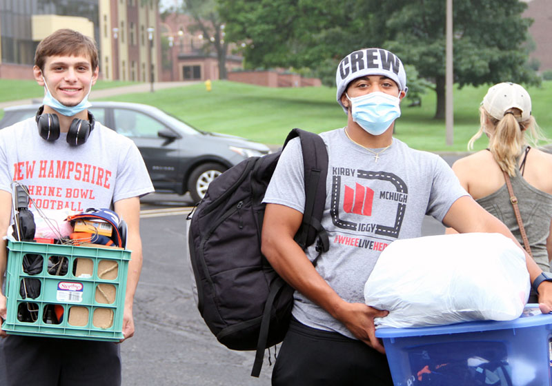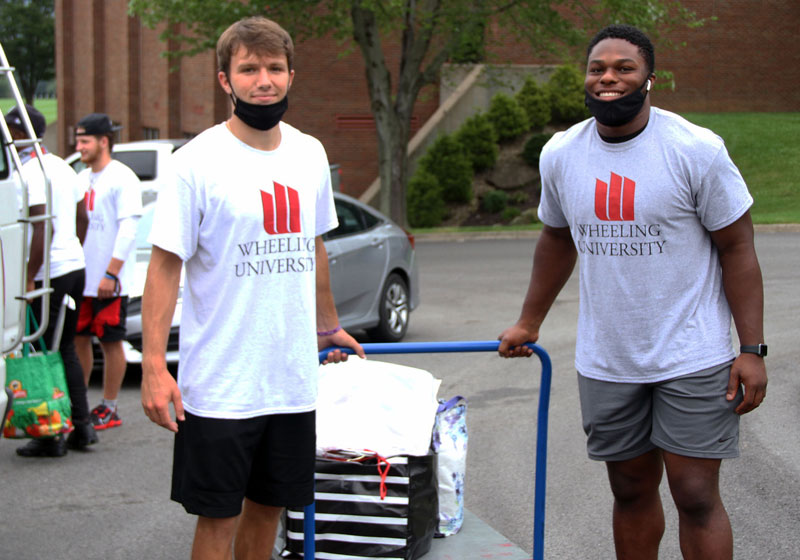 Members of the Wheeling University football team assisted new students as they moved into their residence halls on Friday.